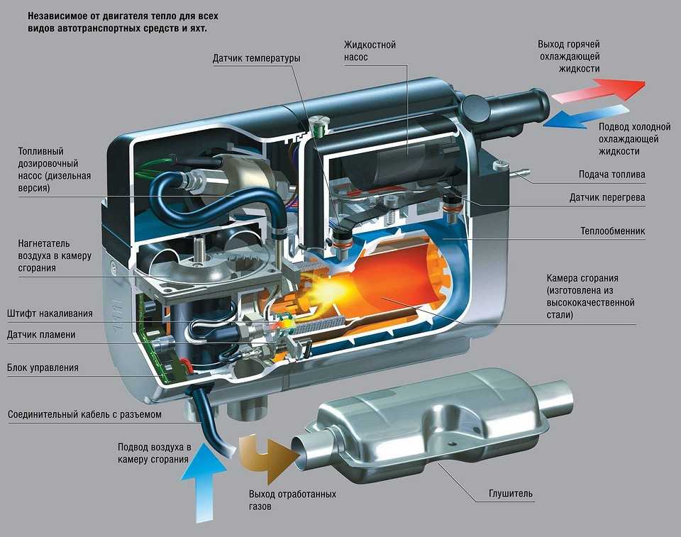 Принцип работы автономного подогревателя двигателя достаточно прост: