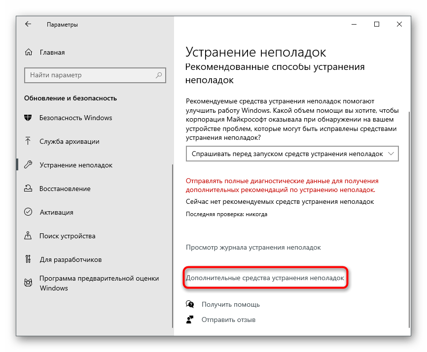 Если в нем не отображаются доступные варианты, щелкните по надписи «Дополнительные средства устранения неполадок».