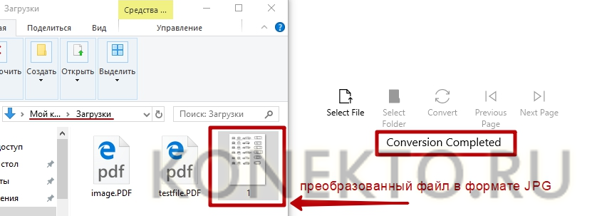 После завершения процесса конвертации пользователь увидит текст «Conversion Completed», а файл в формате JPG сохранится в выбранной ранее папке.