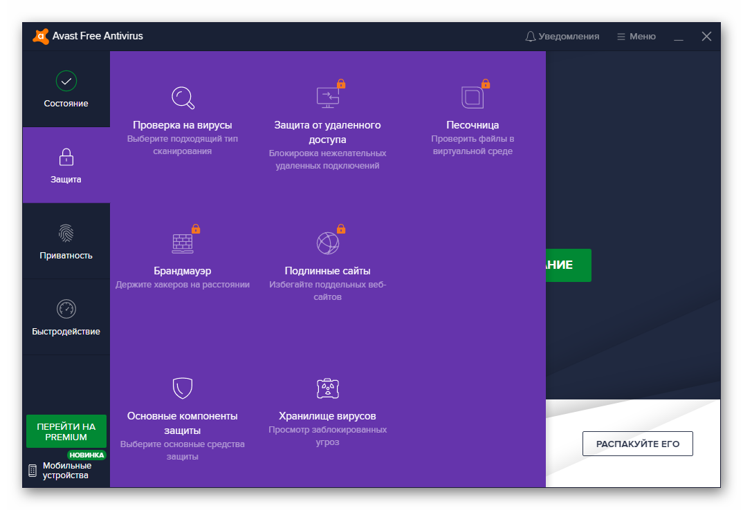 В бесплатной версии Аваста есть следующим функционал: