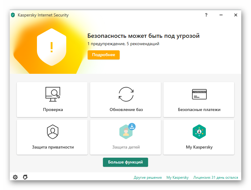 Помимо общего уровня безопасности, разработчики выделяют несколько областей, в нашем случае, экранов, на которых встроенные алгоритмы фокусируют внимание. У Kaspersky это: