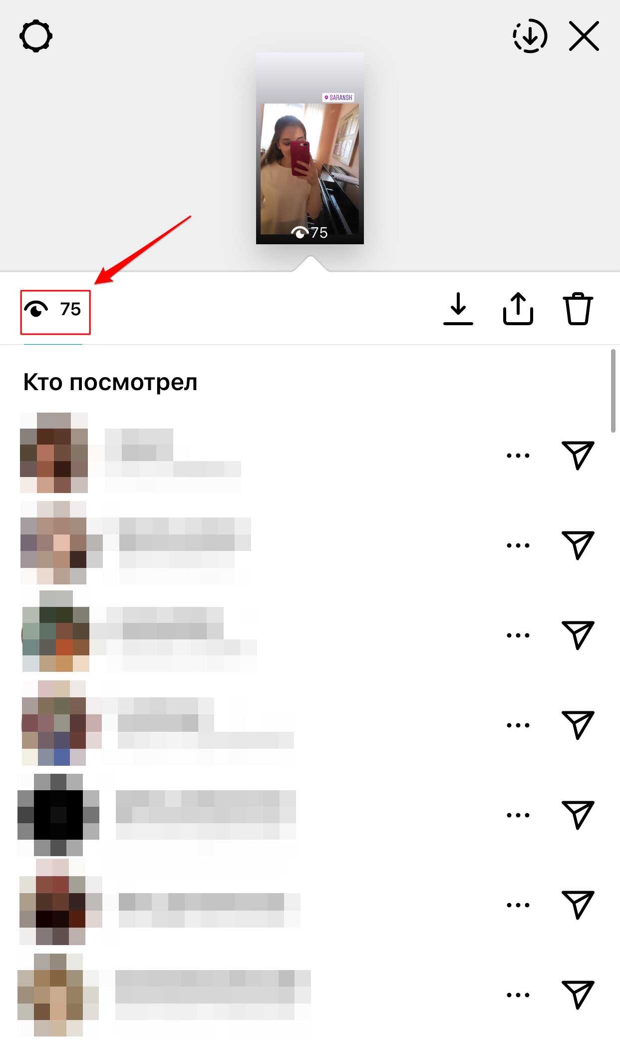 Аккаунты, просмотревшие публикацию, будут выделены в графе «Просмотры»