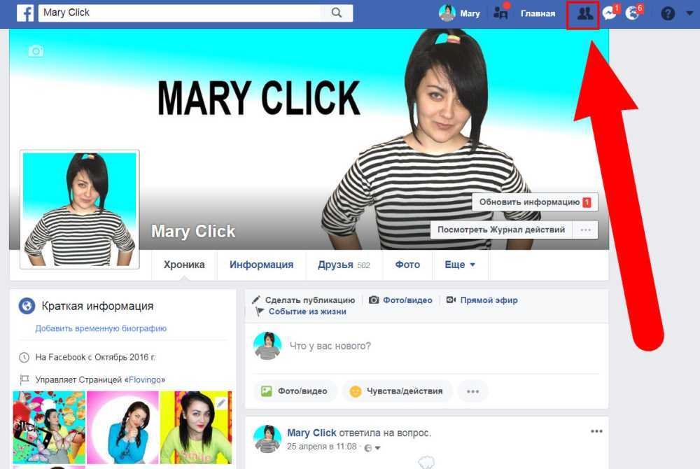 В данном случае узнать, кто следит за вашим профилем в фэйсбуке можно через раздел друзей. Как именно это можно сделать? Прежде всего, вам кликнуть по специальному значку друзей, чтобы высветилось окно с подсказкой: