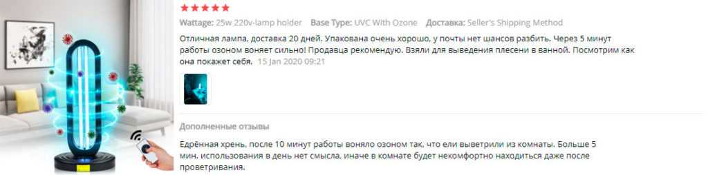 Особенно опасайтесь разрекламированных китайских УФ светильников. Вот очень наглядный отзыв после использования такового.
