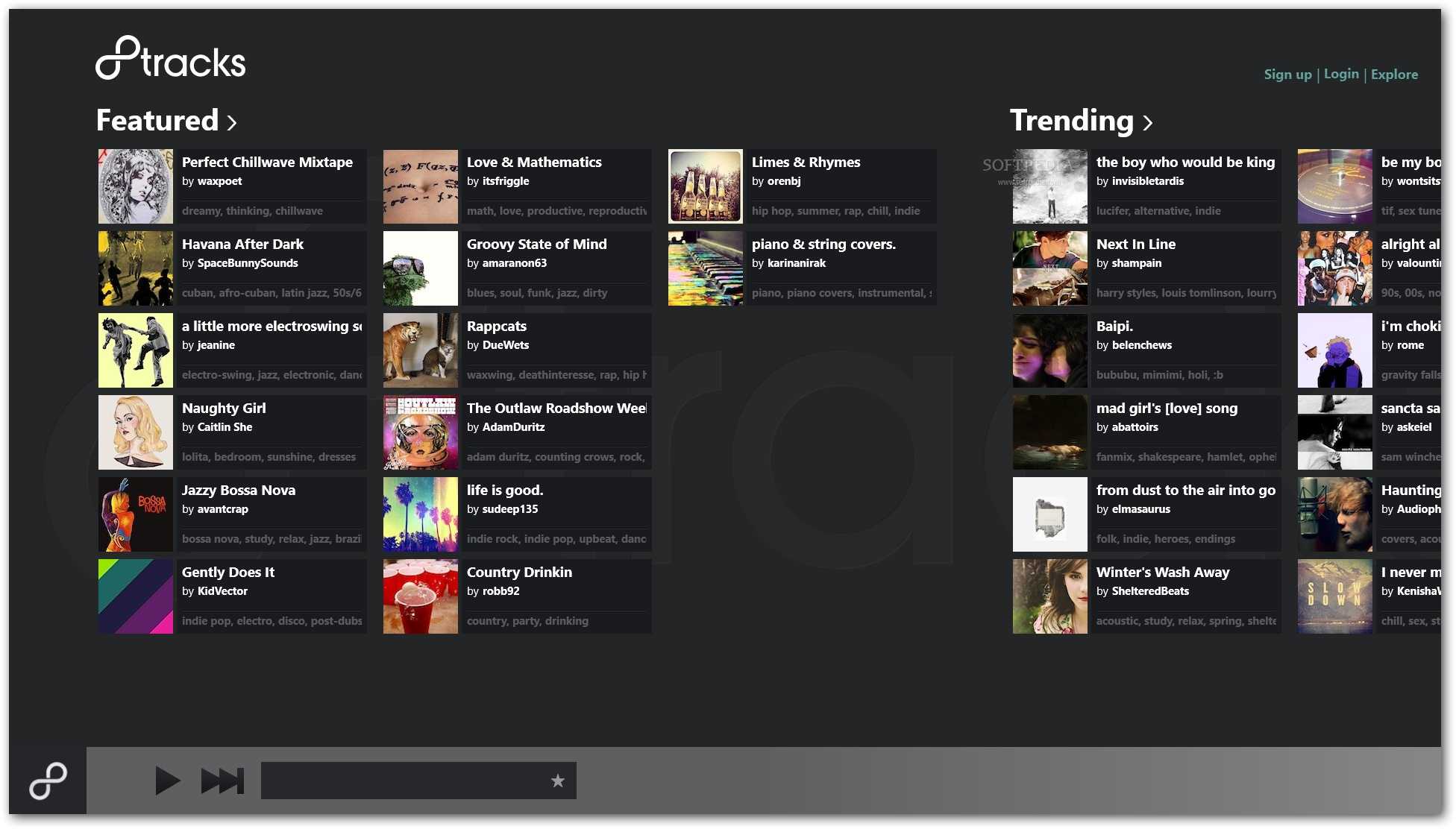 Soundcloud – этот сервис был создан для размещения новых композиций, созданных представителями музыкальной индустрии. Выбор и поиск музыкальных композиций продуман настолько качественно, что позволяет находить практически любые треки. Слушать музыкальных исполнителей можно двумя способами: с регистрацией аккаунта и без него.