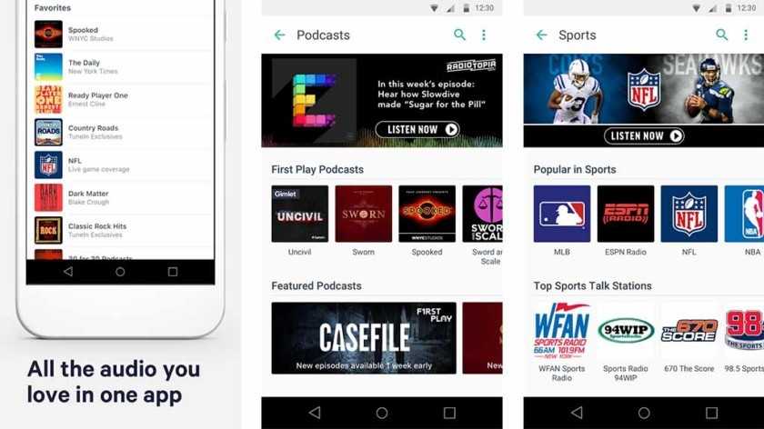 В приложении есть более 100 000 станций, которые охватывают практически все жанры, о которых вы только можете подумать, а также радиостанции AM и FM. В премиум версии можно слушать любые аудиокниги (преимущественно на английском), прямые трансляции телешоу, спортивные трансляции и многое другое.