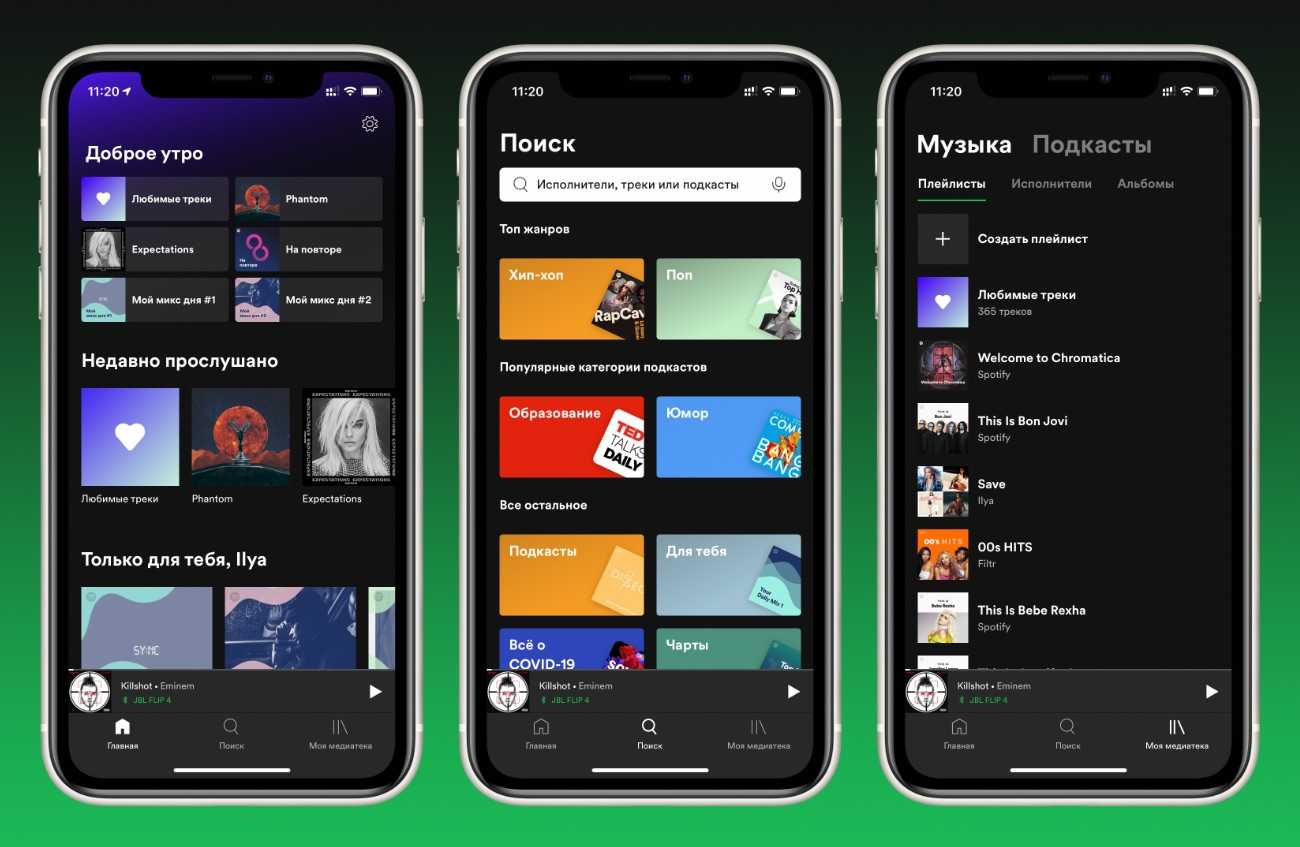 Вся музыка в мире собрана в одном месте! Spotify предлагает огромный каталог композиций любых возможных жанров и даже создаёт плей-листы на основе вашей истории прослушивания. В этом приложении для музыки на айфон есть и подкасты, когда контент можно скачивать для прослушивания офлайн.