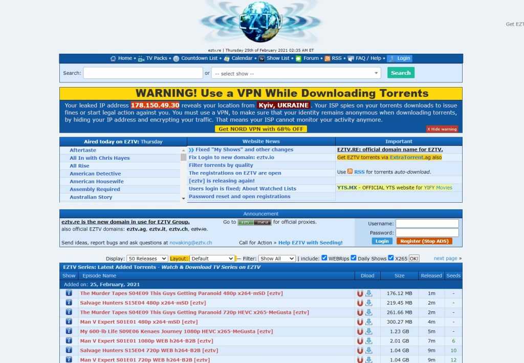 EZTV старый и проверенный торрент-трекер, который пережил несколько блокировок. Пожалуй, это лучший сайт для любителей сериалов. Тут можно найти буквально все популярные сериалы. Также на EZTV много ТВ-шоу и передач со всех стран мира. Под каждое популярное шоу или сериал отведена отдельная страница, на которой есть упорядоченные списки эпизодов.
