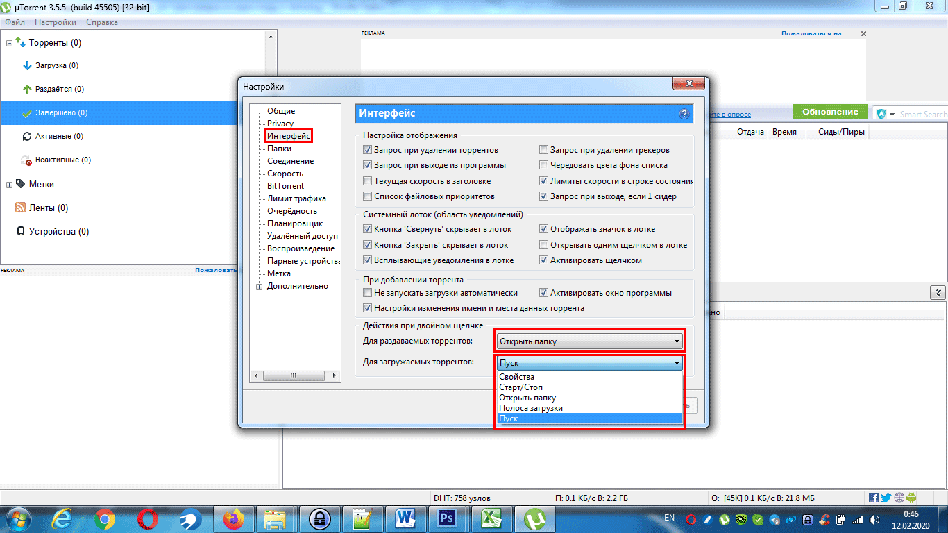 - Настройте действия Мю Торрент при двойном щелчке по торренту.