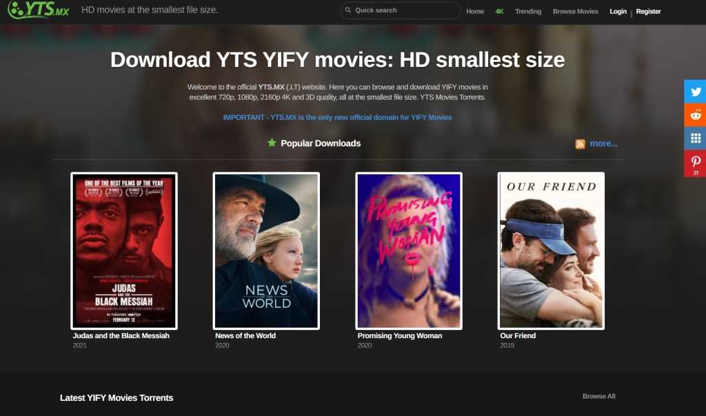 YTS – пожалуй один из лучших сайтов для поиска фильмов. Кино и сериалы – специализация сайта. Порадует пользователей со слабой скоростью интернет загрузки. К большинству фильмов можно скачать субтитры.