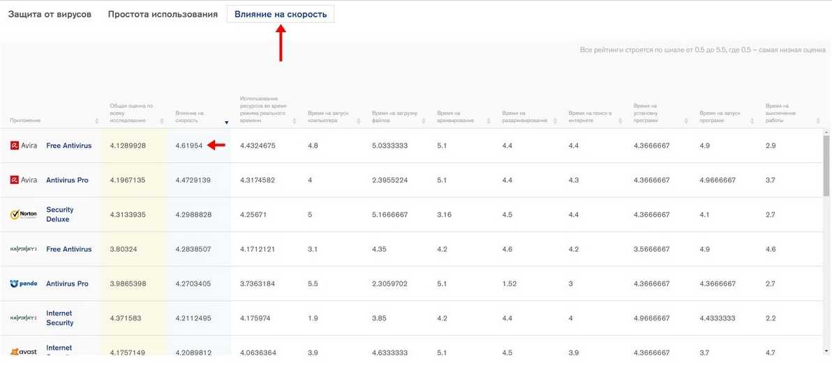 По данным таблицы становится понятно, что менее всего на производительность операционной системы влияет антивирус Avira Free Antivirus. Это продукт немецких разработчиков с достаточно высокой степенью защиты и невысокими системными требованиями.