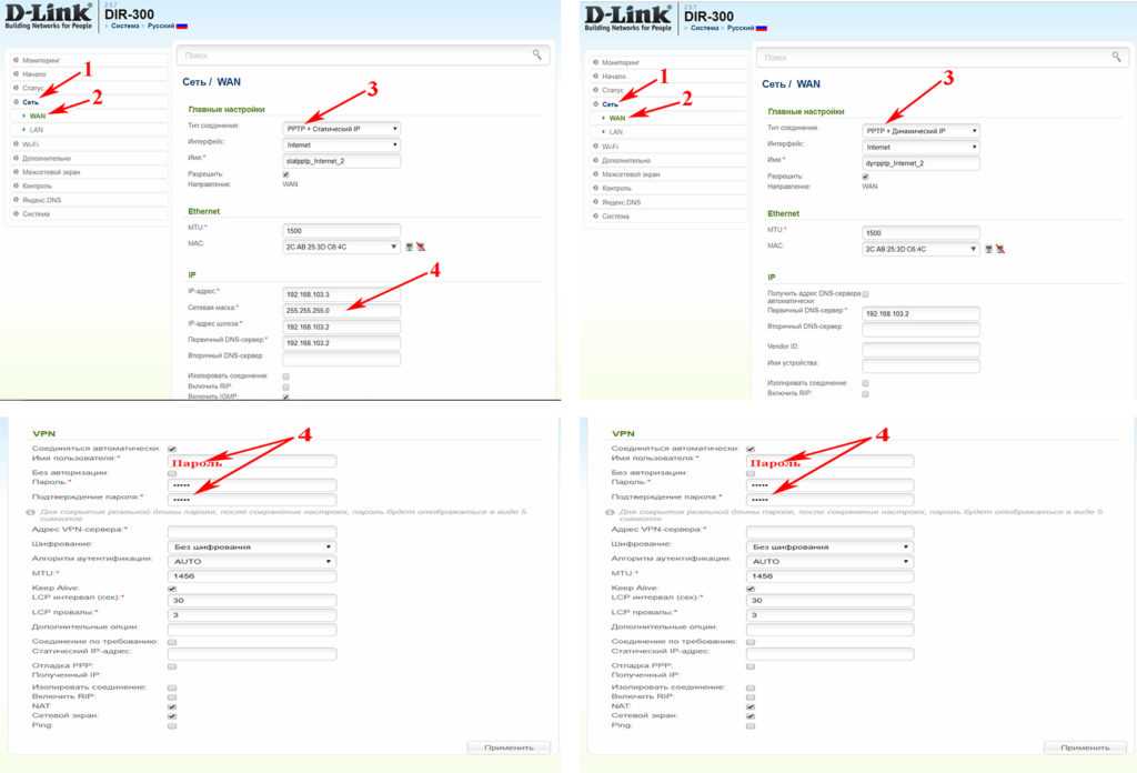 Настраиваем PPTP + Статический IP или Динамический IP