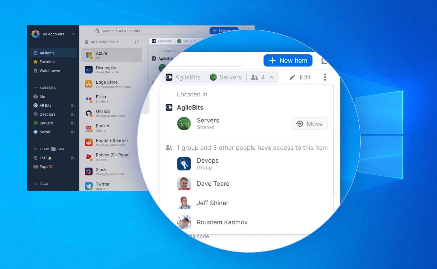 Менеджеры паролей имеют простые функции обмена паролями. Хотите поделиться своим паролем Netflixс членами вашей семьи? Вы можете сделать это с помощью менеджера паролей со встроенной функцией обмена. Вы все получите доступ к одной и той же записи пароля, и если вы обновите пароль, он изменится для всех остальных.