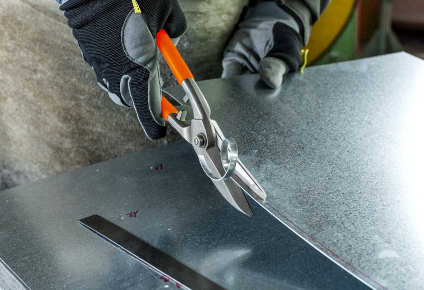 Ножницы справляются с разрезанием плоских металлических пластин толщиной до 0,8 мм. В продаже нетрудно найти как прямые изделия, так и предназначенные для криволинейного разрезания.