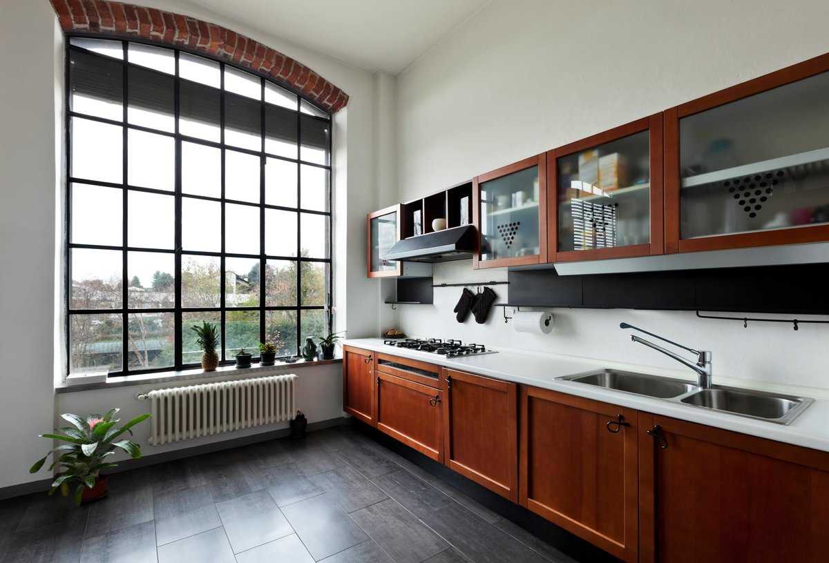 Над самой плитой шкафчики монтировать не рекомендуется, однако это можно делать над вытяжкой. Данное решение в интерьере уже успело стать классическим. При установке следует учитывать минимально допустимую высоту от варочной поверхности — 60 см. Повесить шкафчик вровень с соседними секциями, скорее всего, не получится. Однако это еще не все трудности — при нагревании некоторые материалы выделяют опасные соединения. Обработанное дерево (например, ДСП) от температурного воздействия может испускать формальдегид и фенолы. Высота размещения зависит и от типа плиты. Над электрической рекомендуется оставлять запас от 65—70 см, а над газовой — минимум 75—80 см. На таком уровне желательно как раз разместить вытяжку, а чуть выше — шкафчики. Для размещения мебельных модулей над термовытяжкой предусмотрены специальные варианты ее конфигурации.