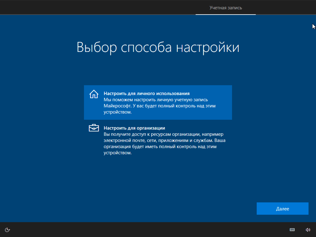 Наконец, еще один момент: вам нужно настроить один из двух профилей системы — для личного или корпоративного использования в офисе, с возможностью работы с корпоративной локальной сетью. Без колебаний выбираем первый вариант.