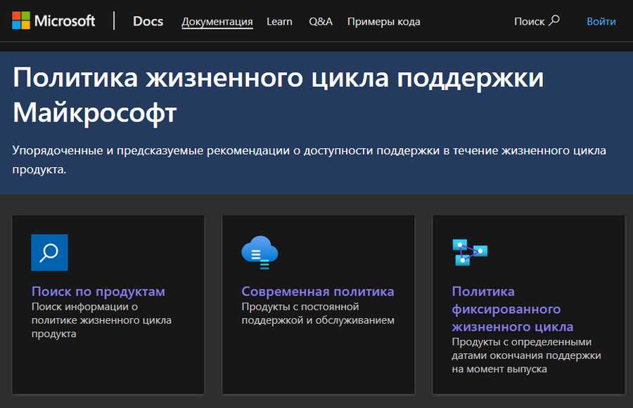 Политики жизненного цикла продуктов Microsoft