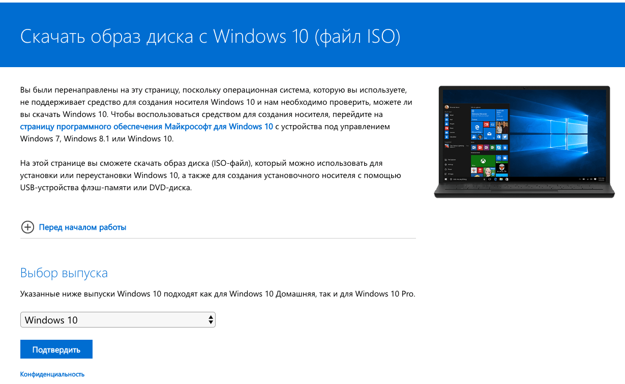 Скачать — Installation Media Creation Tool