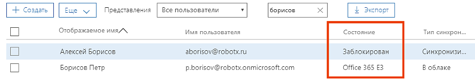 В списке пользователей видно, какие из них имеют назначенные действующие лицензии, а какие нет: