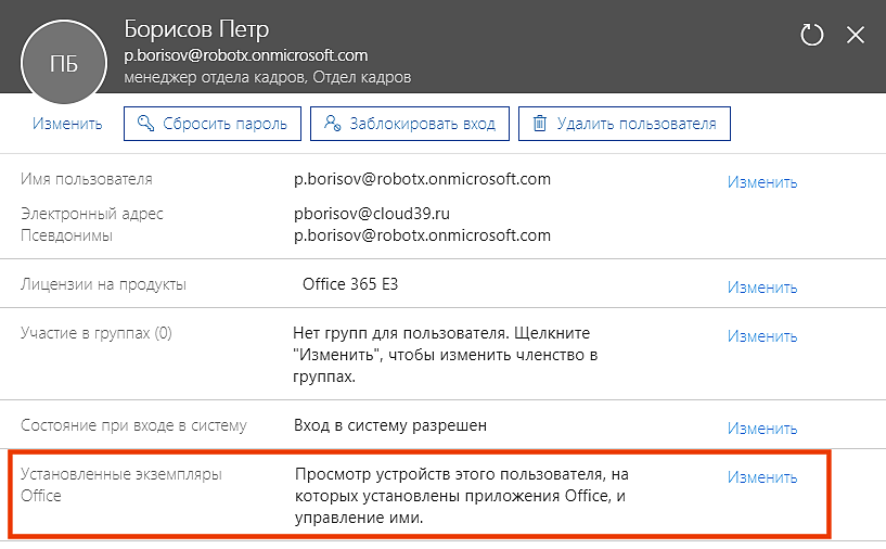 Портал Office.com: удалите зарегистрированные установки приложений Office 365