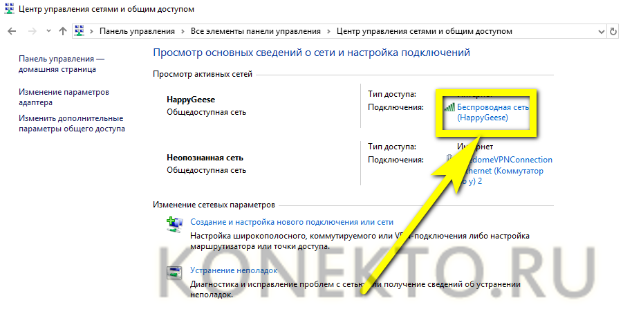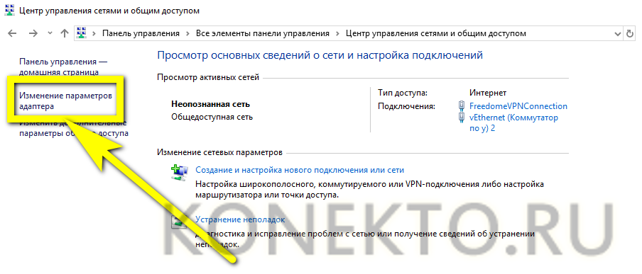 Перейти в раздел «Центр управления сетями и общим доступом» — он будет находиться внизу списка.