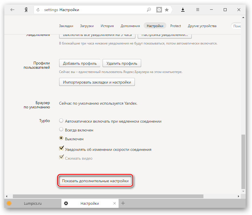 Внизу страницы нажмите на кнопку «Показать дополнительные настройки».