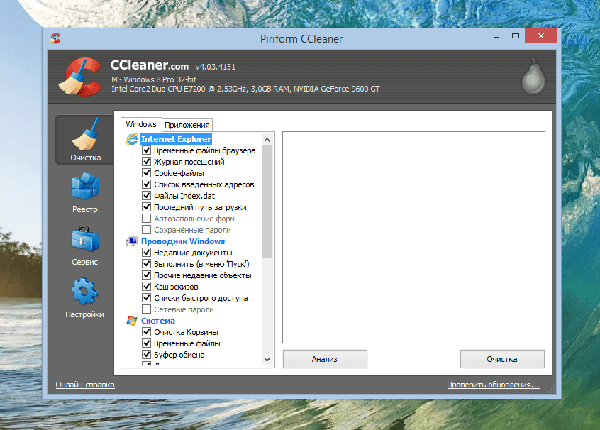 Для очистки системы от мусора воспользуемся кнопкой Анализ расположенной в нижней части окна.