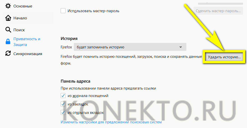 Найти кнопку «Удалить историю» и нажать на неё.