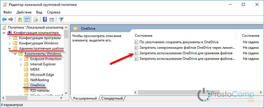 Отключить облачное хранилище ВанДрайв данным способом можно только в редакциях Виндовс 10 Professional, Enterprise, Education, но не в Home.