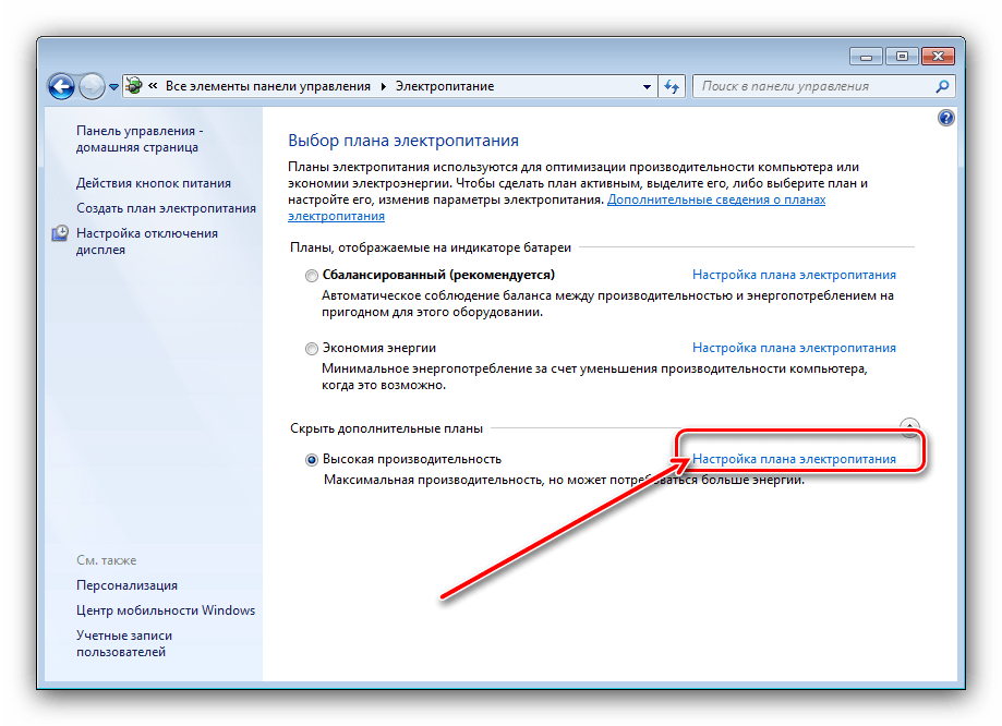 Способ 5: Настройка плана электропитания (портативные ПК)