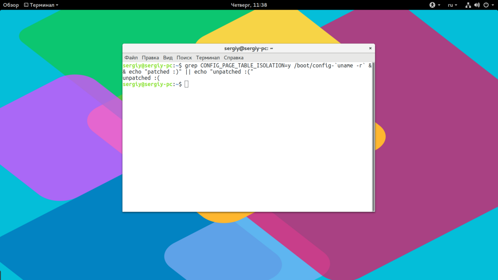 Если команда выдает unpatched — значит вы все еще уязвимы. Другая команда для той же цели — посмотреть конфигурационный файл запущенного ядра: