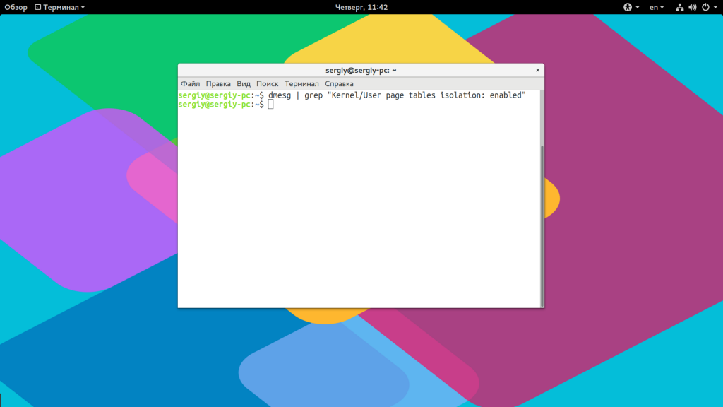 Дальше поговорим о том как проверить на уязвимость spectre и meltdown. Вы можете посмотреть защищена ли ваша система от Meltdown, проверив включена ли изоляция на уровне ядра. Для этого можно использовать несколько команд: