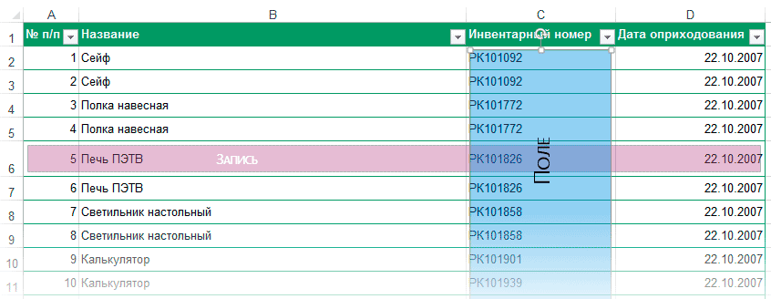 - Ctrl + Shift + стрелка вниз – выделяет все данные в столбце под ячейкой.