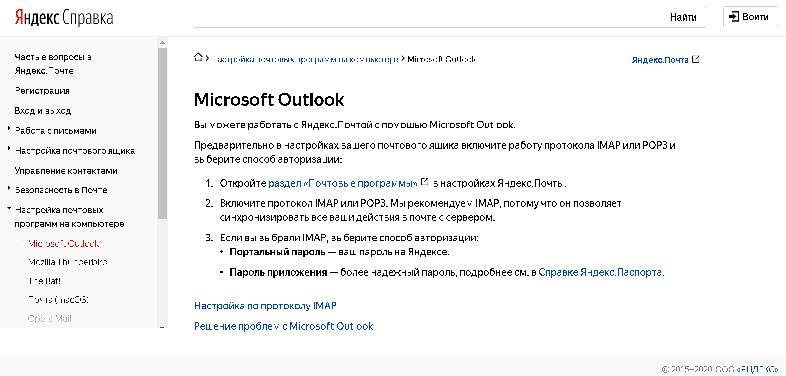 Настройка работы с Яндекс.Почтой в Microsoft Outlook