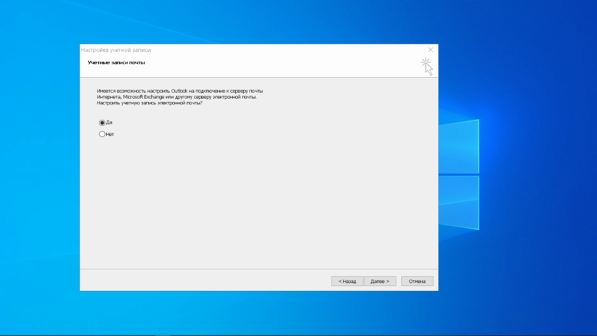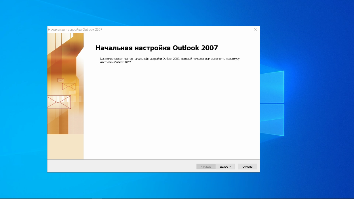 При первоначальном запуске Outlook вас приветствует «Мастер настройки»: