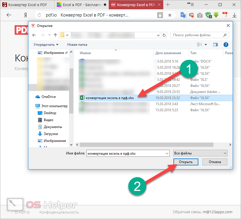 - Снова указываем файл, который хотим перевести из формата «XLSX» в «PDF».
