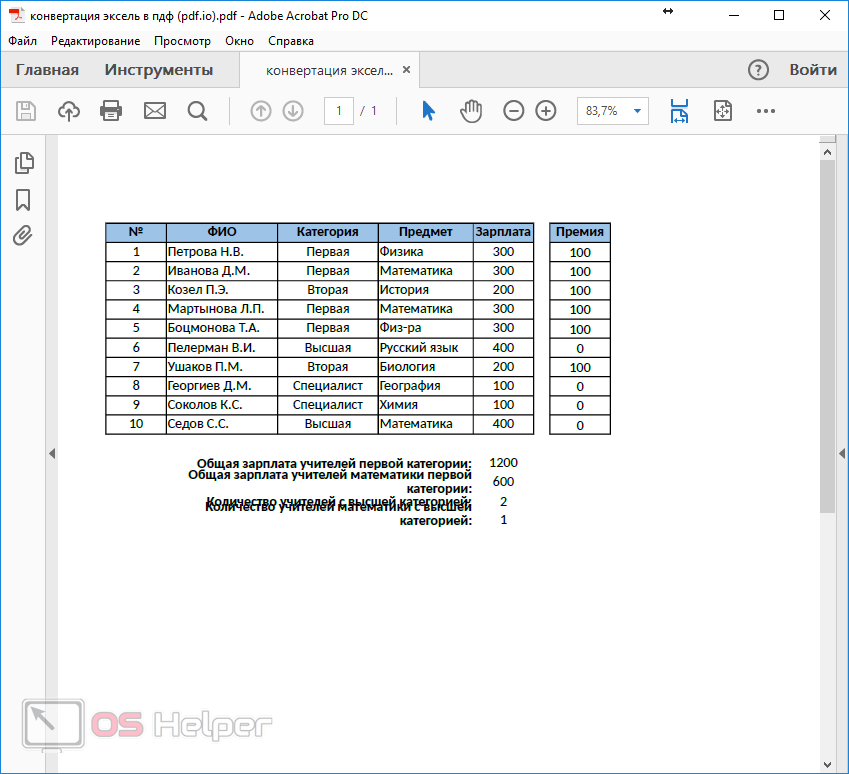 Документ в формате PDF, который вы получите любым из способов, будет отличаться целостной структурой. Он может быть открыт на любом, в том числе мобильном, устройстве, а также не может быть редактирован читателем. Такой файл не содержит ссылок на сторонние ресурсы и формулы расчёта.