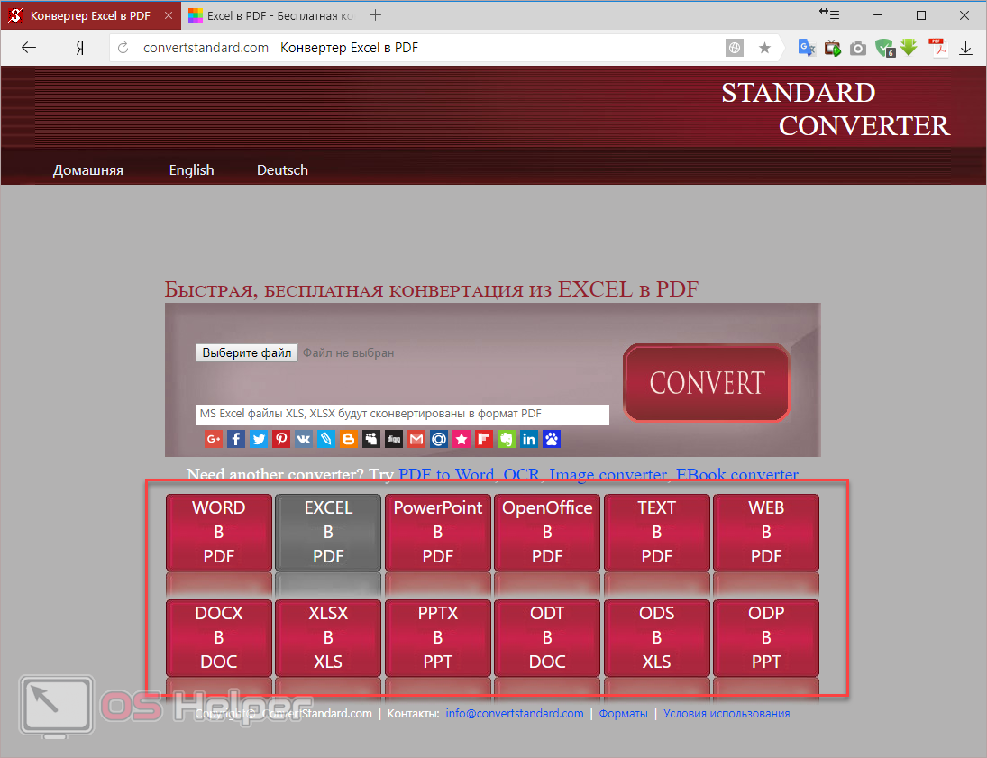 -  приложений для конвертирования; в word или PDF, выберите одинExcel в PDF