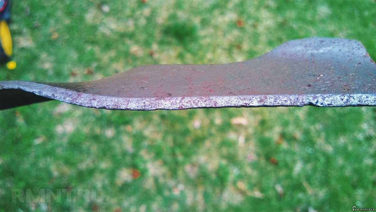Не стоит полировать режущий элемент машины до блеска, главное – удалить налипшие отходы. После этого необходимо улучшить нож, расправив его и удалив все неровности. Бугры возникают из-за попадания на лезвия твердого мусора, камней. Правильный вариант в этом случае – поработать молотком. С помощью этого инструмента и ровной рабочей поверхности, на которую кладется нож, можно исправить все локальные искривления.