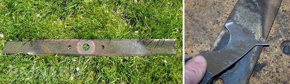 Искривлённое тело лопастей — небольшая проблема, но очень важно, чтобы режущие части были выправлены в одну прямую линию. Также нужно проверить отбрасывающие лопасти, которые часто разгибаются от удара