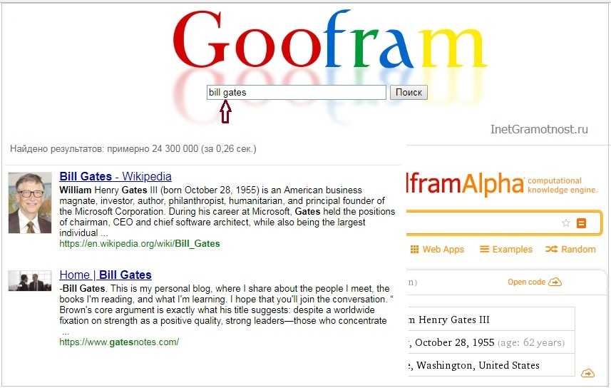 Рис. 7. Поиск одновременно в двух поисковиках: Google и Wolfram Alfa