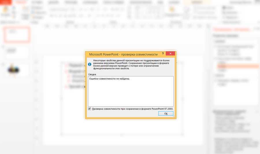 — не столь часто используемый, однако довольно важный инструмент. Проверяет на совместимость различных элементов добавленных в презентацию со старыми версиями PowerPoint (версиями PowerPoint 97-2003).