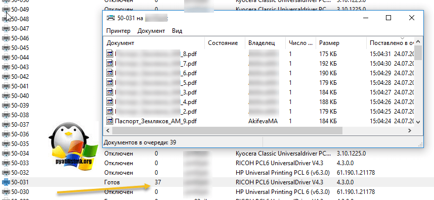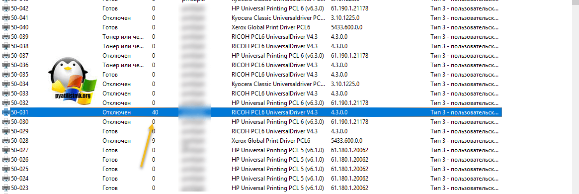 Добрый день! Уважаемые читатели и гости популярнейшего IT блога pyatilistnik.org. Наверняка во многих организациях используется сервер централизованной печати, и это правильно, так как все удобно для управления из одного места, и если возникают какие проблемы, то они так же локализованы. Сегодня ко мне обратились представители технической поддержки, с таким вот вопросом. У них в одном из филиалов перестала идти печать и в консоли управления статус принтера был «отключен (Offline)«. В очереди печати скопилось много заданий. Таких принтеров оказалось около половины из всех представленных на сервере. Давайте я покажу, как я вышел из этой ситуации, без перезагрузки сервера печати.