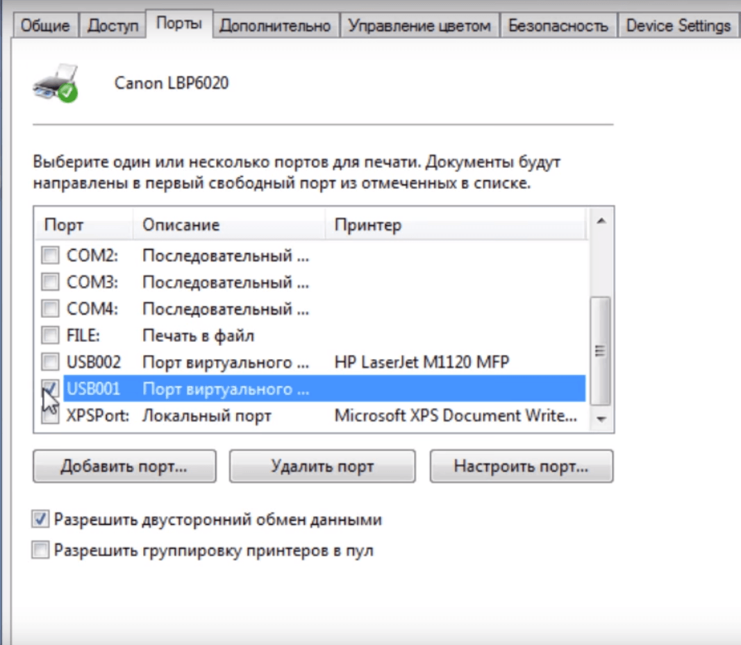 3.3. Если не убирается режим ожидания, переходим в раздел «Порты» и выбираем правильный порт. Случается, что при печати программа сама переносит на порт, который не существует, или в данный момент не актуальный. Просто выбираем необходимый порт и сохраняем настройки. Когда нет уверенности на счет порта, следует попробовать поочередно все варианты. 4.