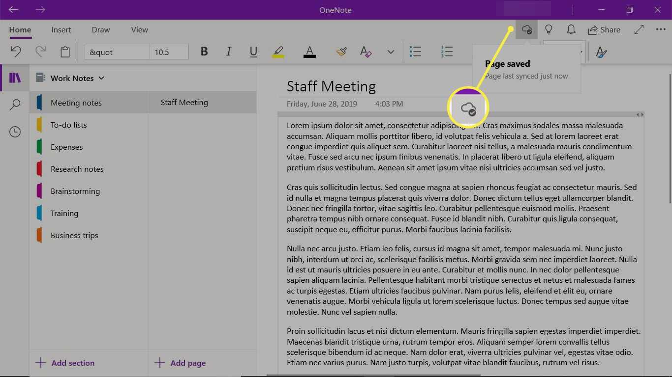 OneNote автоматически синхронизирует заметки с облачным хранилищем, однако после отключения от службы (например, при длительном авиаперелете) рекомендуется выполнить синхронизацию заметок вручную.