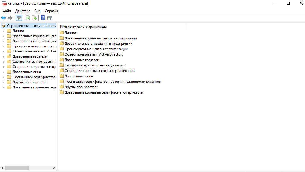 - в командную строку ввести certmgr.msc и нажать Enter;