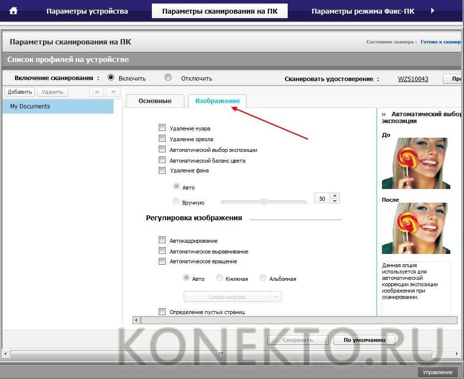 Следующая необходимая активная ссылка в верхней части окна – «Параметры сканирования на ПК», где можно установить интересующие пользователя параметры операции (путь сохранения, разрешение, цвет и т.д.).