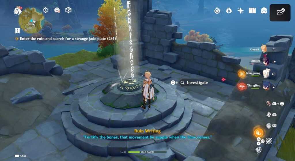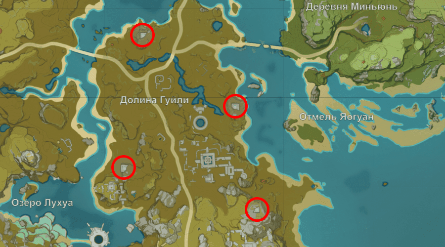 Отправляйтесь в область «Гробница Дунь Юй» и найдите руины возле Гео тотема, который находится возле озера.