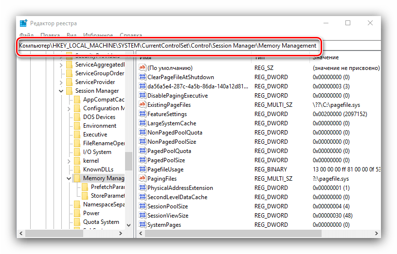 HKEY_LOCAL_MACHINE\SYSTEM\CurrentControlSet\Control\Session Manager\Memory Management