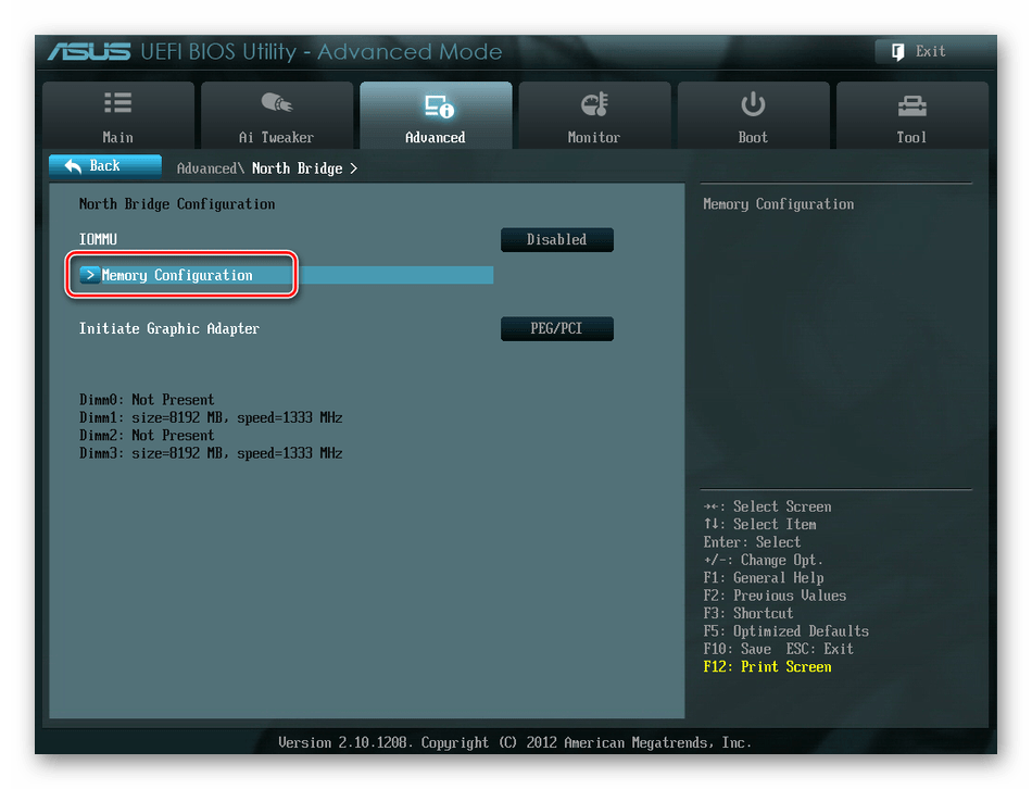 Здесь нас интересует строка «Memory Configuration», на которую и нажимаем.